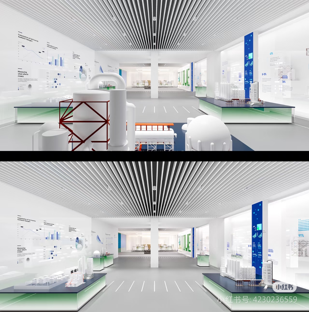 項(xiàng)目特點(diǎn):采用白色為主的色調(diào),藍(lán)色,綠色為點(diǎn)綴顏色,區(qū)別以往企業(yè)藍(lán)白色主色調(diào),合理結(jié)合場(chǎng)地實(shí)際情況做產(chǎn)品展示形式。