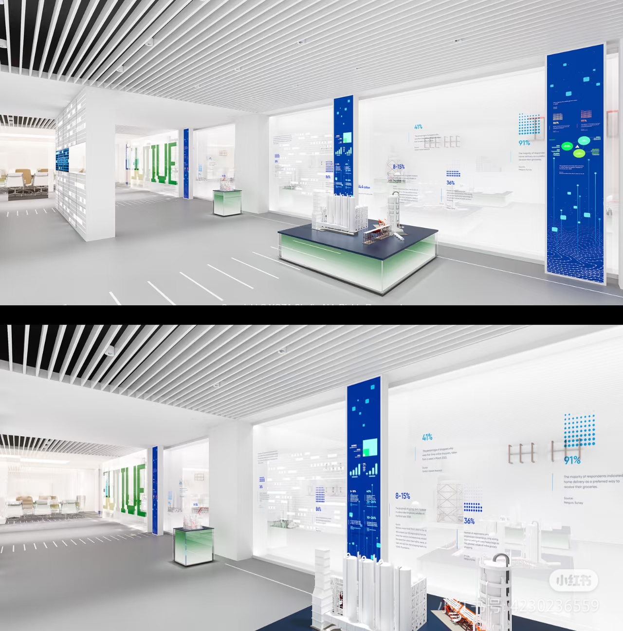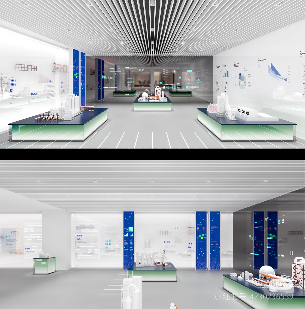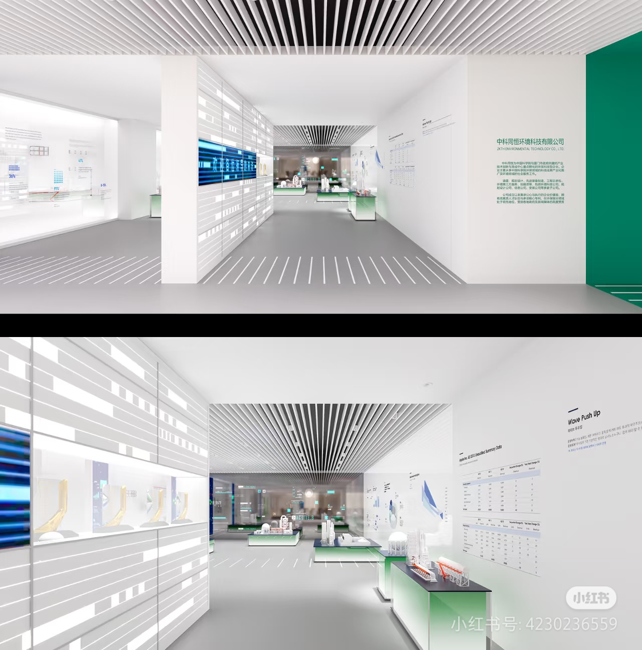 項(xiàng)目特點(diǎn):采用白色為主的色調(diào),藍(lán)色,綠色為點(diǎn)綴顏色,區(qū)別以往企業(yè)藍(lán)白色主色調(diào),合理結(jié)合場(chǎng)地實(shí)際情況做產(chǎn)品展示形式。